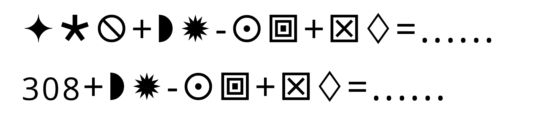 Grâce à la table de traduction, remplacez les symboles par les chiffres puis additionnez ou soustrayez-les :
